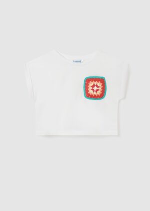 CAMISETA MANGA CORTA CARAS APLIQUE 6033 BLANCO