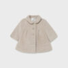 Abrigo de manga larga para recién nacida niña 0 a 18 Meses. Cuello redondo. Cierre con botones. Cálido tejido de paño resistente y clásico. Elementos de adorno: aplique de lazo.