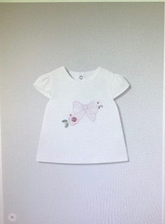 Camiseta de manga corta para recién nacido. Cierre con botones en la espalda para facilitar la puesta de la prenda. Elementos de adorno: bordado.