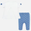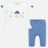 Conjunto de dos piezas para bebé niña recién nacida compuesto por una camiseta con pantalón tipo leggings combinado. Suave tejido de algodón elástico.