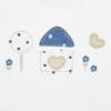 Camiseta de manga corta con aberturas en los hombros. Cuello redondo. Cierre con botones en el cuello para facilitar el ajuste. Modelo con rizo. Diseño con volante decorativo en el bajo de la prenda. Elementos de adorno: dibujo en la parte delantera, apliques de lazos.
