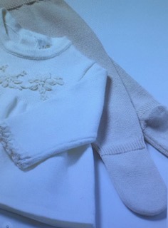 Conjunto tricot de dos piezas para recién nacida compuesto por jersey y polaina a juego.