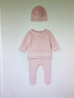 Original conjunto de tres piezas para recién nacida. Tejido de punto tricotosa de tacto suave y agradable.