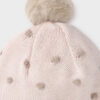 Gorro para recién nacida niña 0 a 18 Meses de materiales cálidos y flexibles, que garantizan un ajuste perfecto a la cabeza y máxima comodidad para protegerle del frío. Elementos de adorno: lazada decorativa, pompón. Estampado de lunares. Este artículo se presenta en una caja de la línea Newborn ideal para regalar en ocasiones especiales.