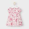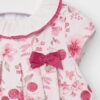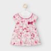 Vestido de manga corta para recién nacida niña de 0 a 18 meses. Cuello redondo con volante. Cierre con cremallera trasera invisible. Suave tejido de algodón elástico. Elementos de adorno: aplique de lazo. Diseño estampado.