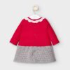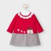 Vestido de manga larga para recién nacida niña de 0 a 18 meses. Cuello redondo con volante. Tejido 100% algodón. Elementos de adorno: bordados, aplique de lazo.