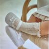 Zapatos de tipo merceditas para recién nacido, de estilo clásico y atemporal para sus estilismos más elegantes. Cierre con velcro ajustable que garantiza una perfecta sujeción del pie.