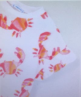 Camiseta de manga corta para niña. Confeccionada en 100% algodón. Presenta un diseño de estampado. Tiene un cuello redondo y volantes en las mangas. Disponible en la talla desde los 2 a los 10 años.