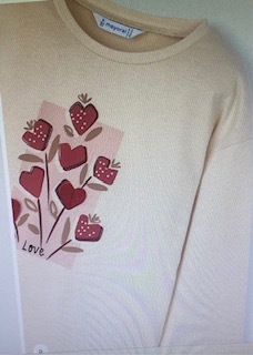 Camiseta de manga larga para niña. Cuello redondo. Tejido 100% algodón. Elementos de adorno: serigrafía (print).