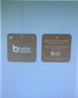 Al elegir nuestros productos de algodón estás apoyando nuestra inversión en la iniciativa Better Cotton. El algodón Better Cotton se obtiene mediante un sistema de balance de masas y no se puede rastrear físicamente hasta los productos finales. Sin embargo, los productores de algodón se benefician de la demanda de Better Cotton en volúmenes equivalentes.