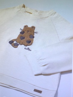 Camiseta de manga ranglán para bebé. Cuello redondo. Cierre con botones a presión en la parte posterior. Elementos de adorno: bordado.