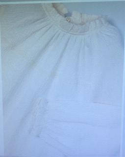 Camiseta de manga larga para niña con volante en la bocamanga. Abertura con botón en el cuello para facilitar la puesta de la prenda. Tejido de bambula de gran fluidez. Modelo con rizo.