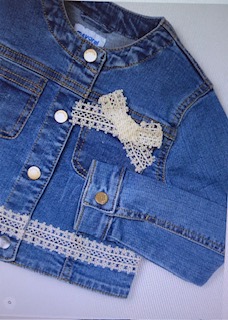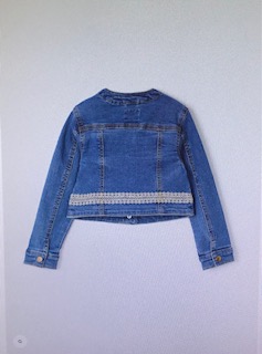 Cazadora de manga larga para niña con puños abotonados. Cierre con botón a presión. Mezcla de tejidos combinados para lograr un diseño único y diferente. Bolsillos funcionales en la parte delantera. Elementos de adorno: lazo.