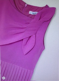 Mono sin mangas para niña. Cuello asimétrico. Cierre con cremallera trasera invisible. Tejido fluido para una máxima comodidad en el día a día. Modelo con tableado. Elementos de adorno: lazo.