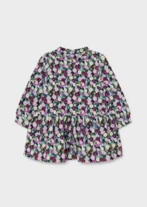 Blusa de manga larga para bebé niña de 6 a 36 meses. Cuello redondo con volante. Cierre con botones en la espalda para facilitar la puesta de la prenda. Suave tejido de algodón elástico.