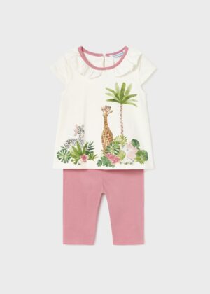 Prenda ECOFRIENDS, contiene algodón sostenible. Camiseta de manga corta para bebé niña de 6 a 36 meses. Cuello redondo. Cierre con botones a presión en la parte posterior para facilitar la puesta de la prenda. Suave tejido de algodón elástico. Elementos de adorno: dibujo en la parte delantera.