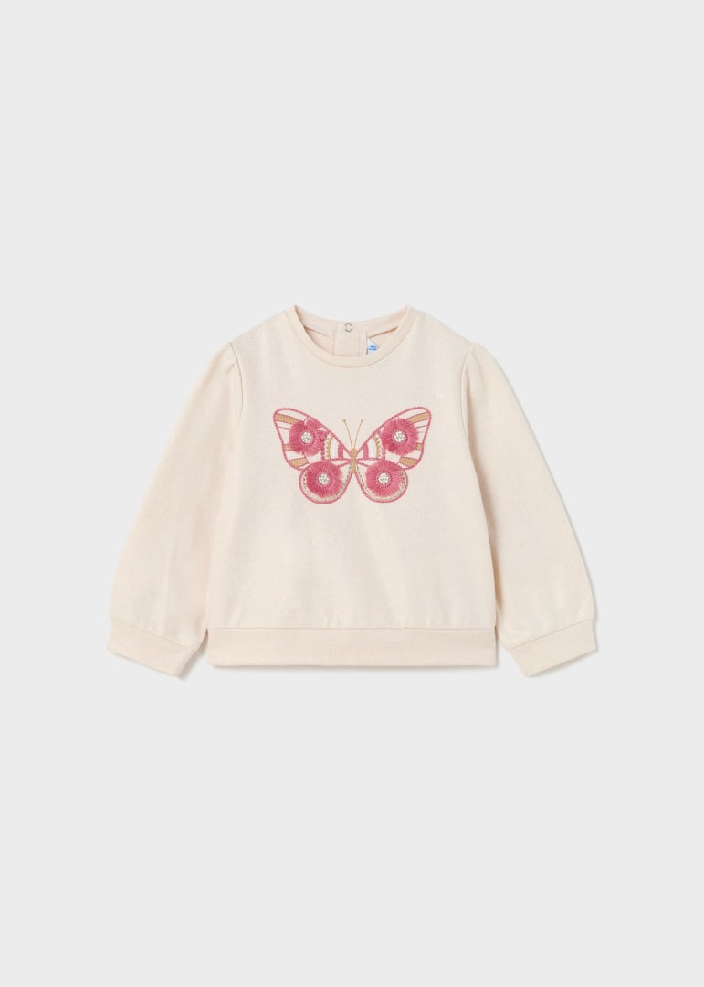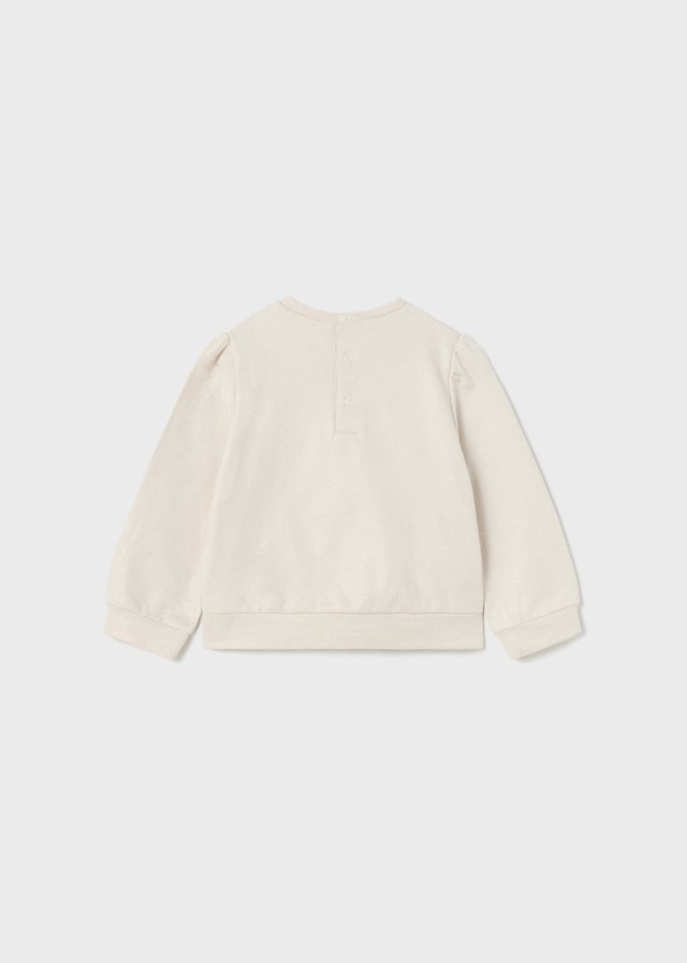 Sudadera de manga larga para bebé. Cuello redondo. Cierre con botones a presión en la parte posterior para facilitar la puesta de la prenda. Tejido 100% algodón.