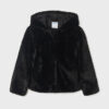Relleno de la prenda ECOFRIENDS 100% Poliester reciclado. Abrigo de manga larga para chica. Cuello con capucha. Cierre con botones a presión ocultos que permitirán vestir la prenda con facilidad. Suave y gustoso tejido exterior de pelo.