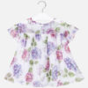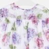 Blusón de manga corta para chica con detalles de volantes. Cuello redondo. Pequeña abertura en la espalda con cierre de botón para facilitar la puesta de la prenda. Confección con original tejido de plumeti. Elementos de adorno: volantes decorativos. Diseño estampado.
