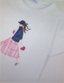 Camiseta bordada para niña. Cuello redondo y mangas cortas. Confeccionada en 100% algodón. Presenta un diseño bordado en la parte frontal. Disponible en la talla desde los 2 a los 10 años.