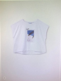 Camiseta de manga corta para chica. Elementos de adorno: dibujo en la parte delantera.