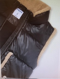 Contiene poliéster reciclado. Chaleco para chica. Cuello envolvente. Cierre central delantero con cremallera. Cálido tejido de punto acolchado. Forro interior combinado con borrego. Bolsillos funcionales en la parte delantera.