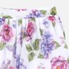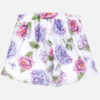 Cómoda falda pantalón para chica. Cierre con cremallera invisible en el lateral de la prenda. Goma elástica regulable en la cintura para ajustar el talle. Fluido tejido de gasa de gran ligereza y frescura. Estampado con decoración floral.