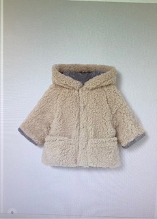 Abrigo de manga ranglán para recién nacido. Capucha con detalles de pelo. Cierre central delantero con cremallera. Suave forro interior de poliéster. Bolsillos funcionales en la parte delantera. Se trata de un artículo de diseño unisex de gran versatilidad por la neutralidad de sus tonos y su forma. Este modelo presenta un diseño reversible.