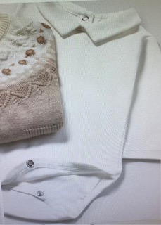 Body de manga larga para recién nacido. Cuello camisero. Cierre con botones a presión en la parte posterior. Botones a presión en la entrepierna para facilitar la puesta de la prenda.