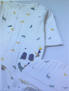 Pelele de manga larga para recién nacido. Diseño con pies. Cierre con botones a presión en la parte delantera. Botones a presión en la entrepierna para facilitar la puesta de la prenda. Elementos de adorno: aplique decorativo, bordado. Diseño estampado. Las tallas mayores de este modelo (12 y 18 meses) presentan una suela antideslizante.