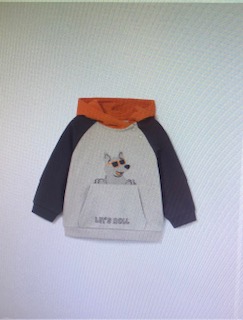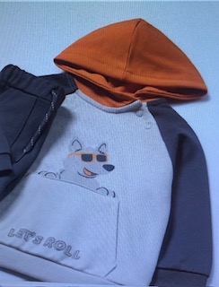 Sudadera de manga larga para bebé. Cuello con capucha. Botones a presión en el hombro para facilitar la puesta de la prenda. Bolsillo funcional en la parte delantera. Elementos de adorno: serigrafía (print).