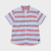 Camisa de manga corta para bebé niño de 6 a 36 meses. Modelo con cuello mao al tono. Tejido 100% algodón. Motivo de rayas.