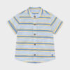 Camisa de manga corta para bebé niño de 6 a 36 meses. Modelo con cuello mao al tono. Tejido 100% algodón. Motivo de rayas.