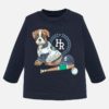 Camiseta de manga larga para bebé niño. Cuello redondo. Cierre con botones a presión en el hombro para facilitar la puesta de la prenda. Tejido 100% algodón. Elementos de adorno: dibujo en la parte delantera.
