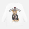 Camiseta de manga larga para bebé niño. Cuello redondo. Cierre con botones a presión en el hombro para facilitar la puesta de la prenda. Tejido 100% algodón. Elementos de adorno: dibujo en la parte delantera.