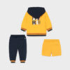 Chándal de tres piezas para bebé niño compuesto por una sudadera y dos pantalones deportivos, unos cortos y otros largos. Cómodo tejido de felpa de tacto gustoso y suave.