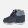 Botines infantiles para bebé niño imprescindibles en cualquier armario de invierno. Un zapato práctico y abrigado para los días más fríos. Cierre regulable con doble velcro para una puesta rápida y un mejor ajuste. Calzado con forro interior de algodón y plantilla de piel. Suela de goma antideslizante para afianzar la pisada. Revestimiento exterior combinado de piel y materiales a contraste. Cuello de la caña a contraste.