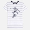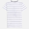 Camiseta de manga corta para chico. Cuello redondo en distinto color. Suave tejido de algodón elástico. Elementos de adorno: dibujo en la parte delantera. Motivo de rayas.